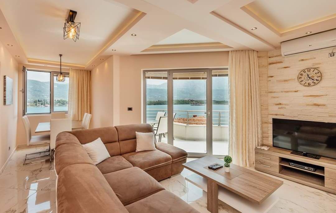 Rooms : Bedroms: 2 Bathroom: Garaje :This modern and stylish two-bedroom apartment has an area of 64 m² and comes with an 18 m² garage. Located on Obala Durasevica, this apartment offers stunning sea views from all rooms. It is on the 3rd floor of the building, which does not have an elevator. The apartment is fully furnished and includes two separate terraces; one smaller and one larger, accessible from the living room. Additionally, by purchasing this apartment, you will also become the owner of a 1/6 share (85 m²) of the land from the main road to the building and around the building. All property and land ownership papers are clear and legally valid. Don’t miss this opportunity!