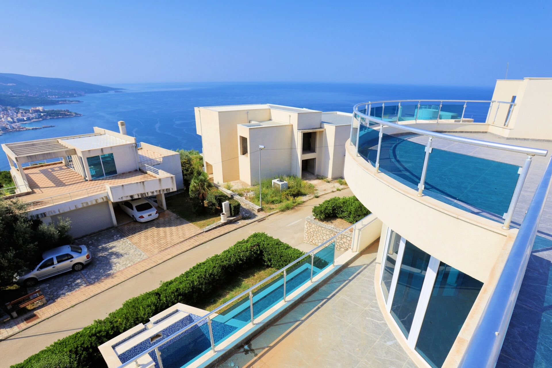 Located in Bar, Montenegro, this 200 m² villa has a building permit, a private pool and a 105 m² terrace with open sea views